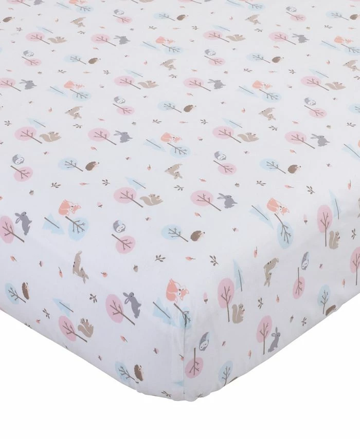 Your little one will sleep soundly among the beautiful flowers, foliage and cute forest creatures included in this woodland design. This mini fitted crib sheet is perfect for a feminine, woodland-themed nursery.