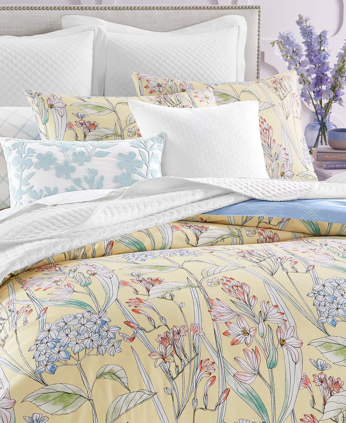 Give your bedroom a floral refresh with the Damask Designs Hydrangea Duvet Set from Charter Club, featuring a vibrant floral print and a smooth sateen finish. Made with cotton, this buttery yellow comforter will add a garden-fresh feel to any bedroom. Own your style and pair with any Damask Designs decorative pillow.