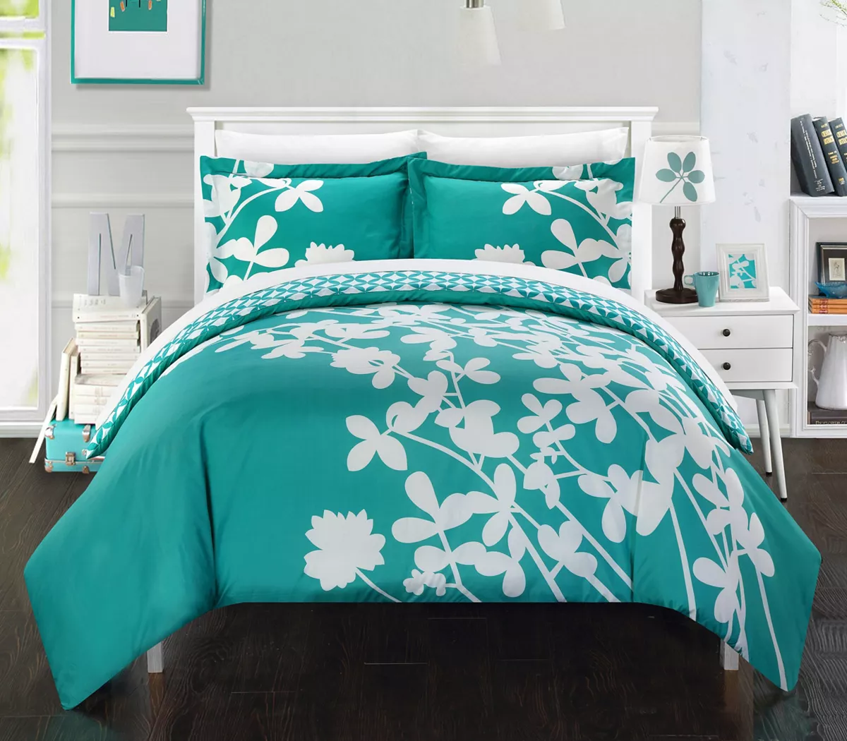 Elegant floral design reversible comforter set done over a panel printing like a photo frame. Enjoy this large scale print, which will make your bed feel like a real-life garden. Reversible contrast print allows you to switch your bedroom decor at a glance.