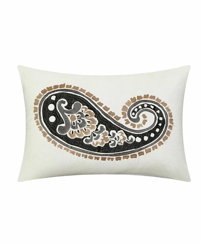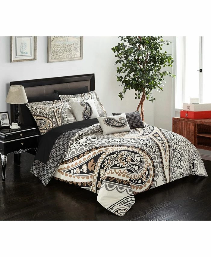 A fashion forward comforter set with everything you need for a complete bedroom décor makeover. Sophisticated, contemporary comforter featuring a large scale paisley print on the face and a contemporary geometric pattern on the reverse. Sheet set, design coordinated shams and decorative pillows are included to complete the look.