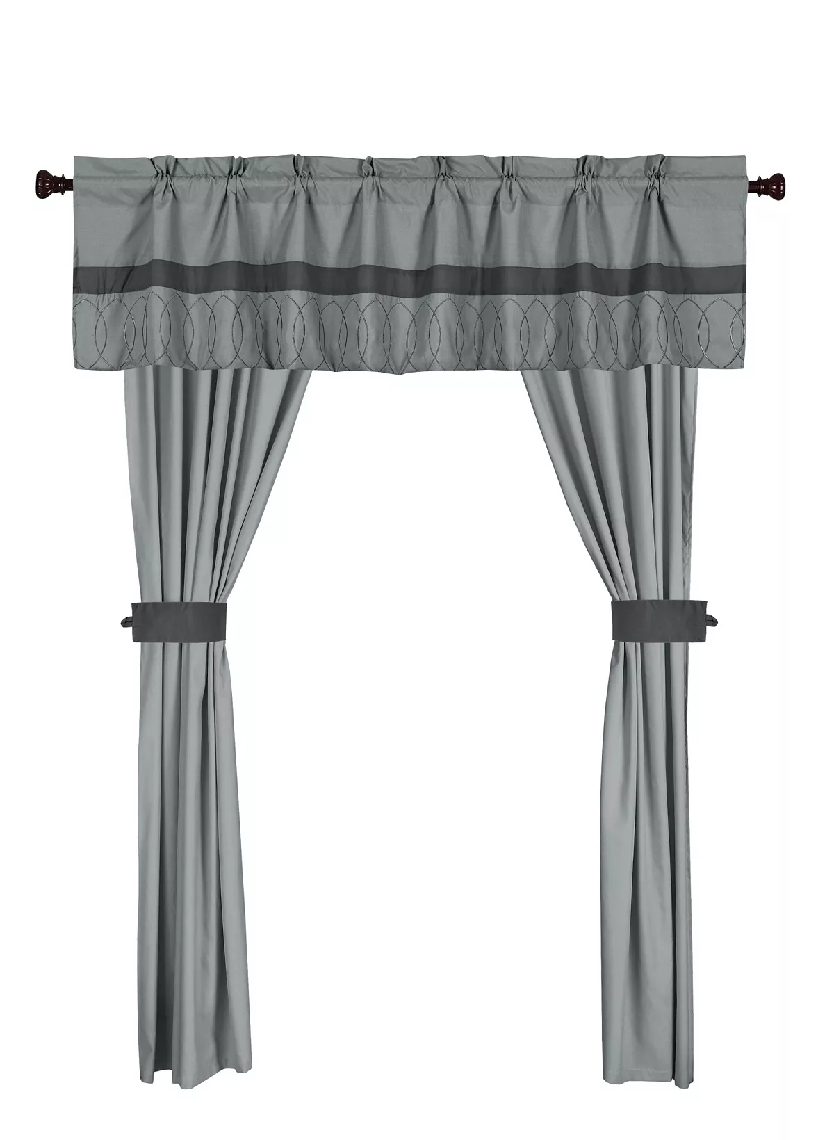 Complete the look, an embroidered contemporary design alongside quilted embellished detail is the ultimate luxury for your master suite. This comforter set, sheet set, decorative pillows, shams and coordinating window treatment sets are all included in this super set. Enjoy details and trims in a color blocking theme that is sure to decorate your entire master suite or guest bedroom in one purchase.