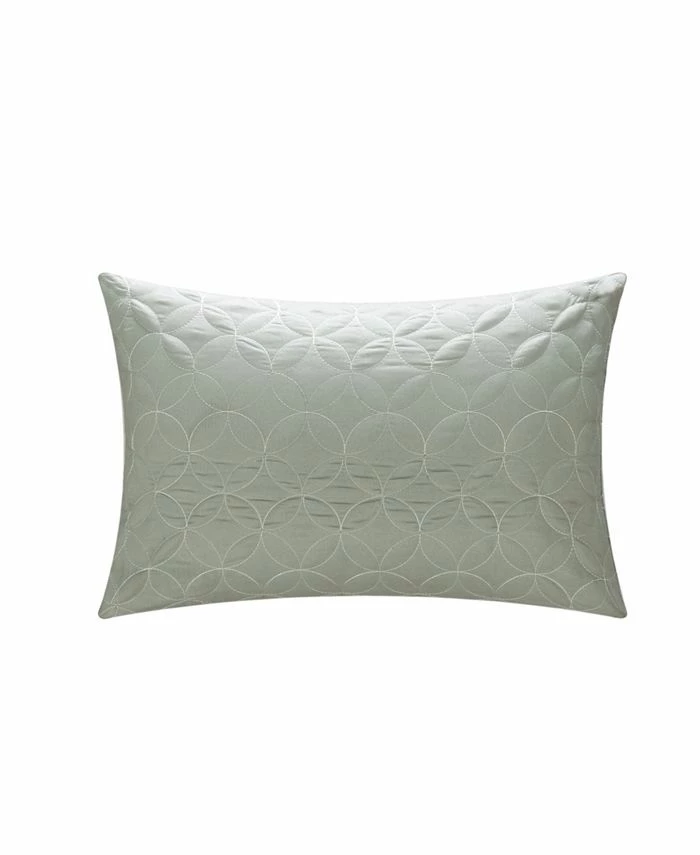- Large scale floral print design reverses into geometric diamond pattern includes coordinated decorative pillows