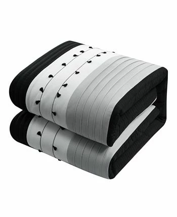 Give your bedroom a fresh, clean look with the contemporary design of the Lainy comforter set from Chic Home. The comforter features a pleated and ribbed color block design with embroidered details. Two unique decorative pillows and two design coordinated pillow shams complete the look.