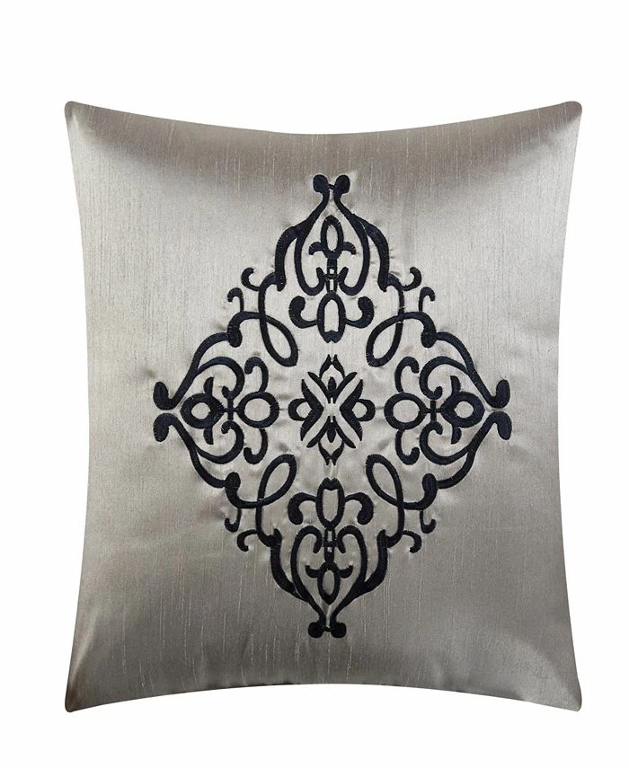 Take your bedroom decor in a new direction with the sophisticated style of the Meryl comforter set from chic home. This stylish comforter features a jacquard scroll medallion pattern with a solid color border.