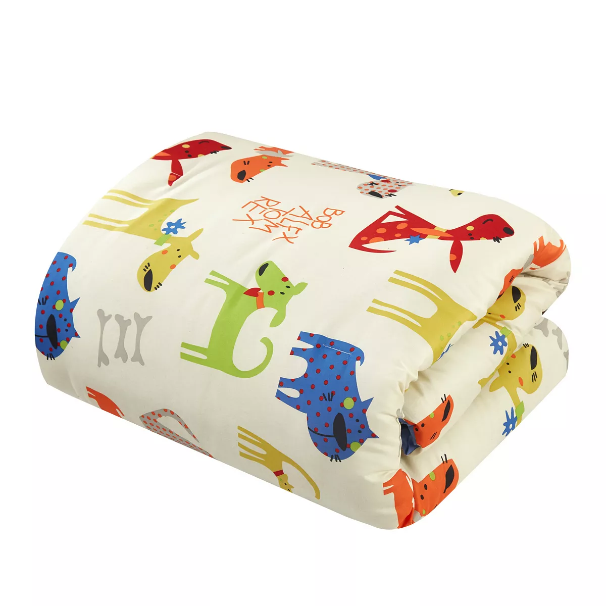 A fun comforter set perfect for back to school or college with everything you need to a transform a child’s bedroom or a dorm. The comforter features a Man’s Best Friend theme completed with colorful dogs and puppies of all shapes and sizes. A printed Doggo decorative throw pillow complements the comforter. Design coordinated pillow shams and a fleece blanket with a dog bone and paw print pattern are included to complete the look.