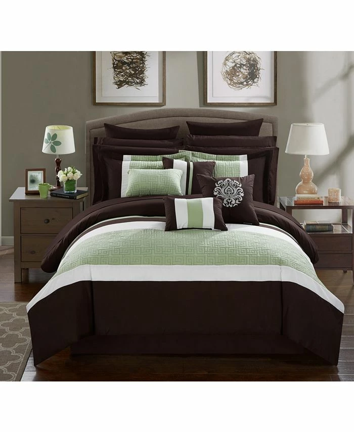 Complete the look, an embroidered contemporary design alongside quilted embellished detail is the ultimate luxury for your master suite. This comforter set, sheet set, decorative pillows, shams and coordinating window treatment sets are all included in this super set. Enjoy details and trims in a color blocking theme that is sure to decorate your entire master suite or guest bedroom in one purchase.