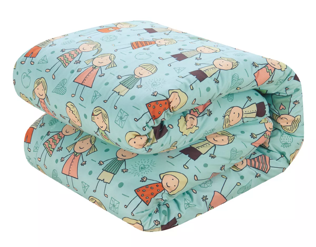 A fun and colorful comforter set perfect for back to school with everything you need to a transform a child’s bedroom. The comforter features a “Happy Kids” theme complete with smiling kids on a field of green with woodland details and a two-tone geometric dot and bubble pattern on the reverse. Design coordinated super-soft microfiber sheets, reversible pillow shams and a reversible printed decorative pillow with piping border are included to complete the look.