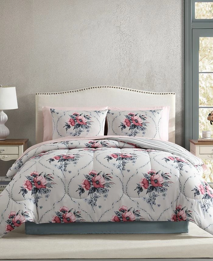 Bring home a classic and romantic look with the Tina 8 Piece Comforter Sets from Hallmart Collectibles featuring a coordinating sheet set and bed skirt to fully outfit your bed. Please see the bullets below for included coordinates by bed size. This Comforter Set features a gorgeous floral print that reverses to a solid color.