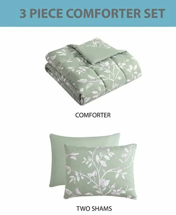 Add a breath of fresh air to any bedroom with the Wallis 3 Piece Reversible Comforter Sets from Hallmart Collectibles featuring coordinating shams to fully outfit your bed. Please see the bullets below for included coordinates by bed size. This Comforter set features a leaf pattern print that reverses to solid color.