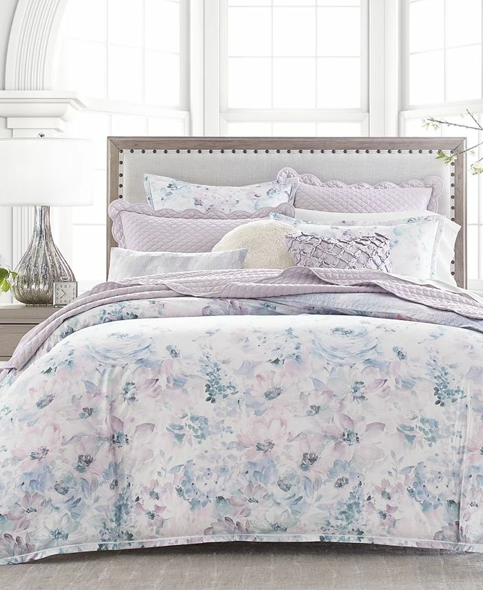 Infuse fresh color and artistic techniques to your bedroom with the Primavera Floral duvet cover from Hotel Collection, featuring a delightful watercolor floral print and the luxe comfort of Pima cotton.