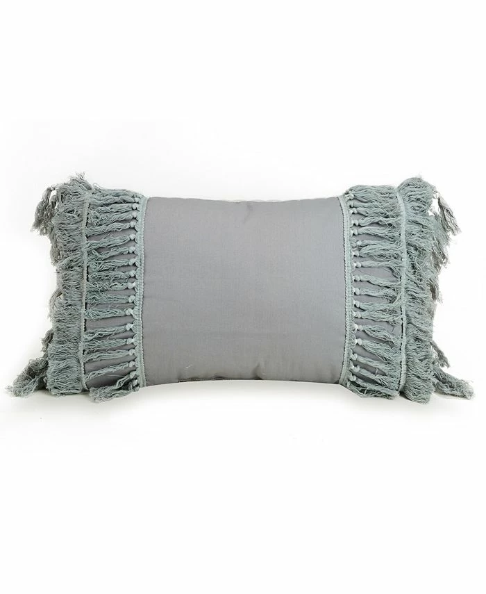 Crafted of all cotton grey fabric this Jessica Simpson decorative pillow features fun, bohemian fringe.