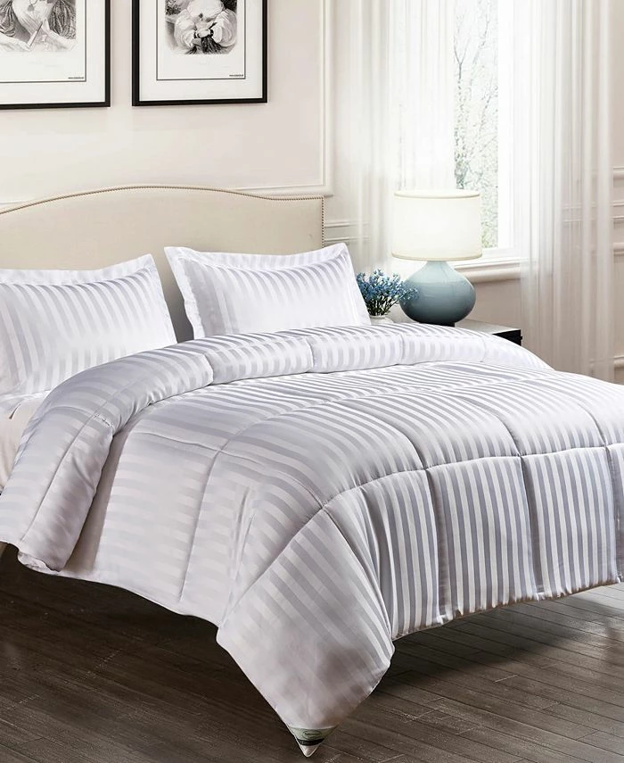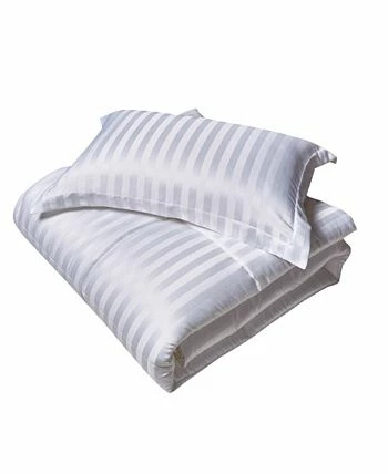 An elegant damask stripe comforter with matching pillow shams gives your bed that special custom look.