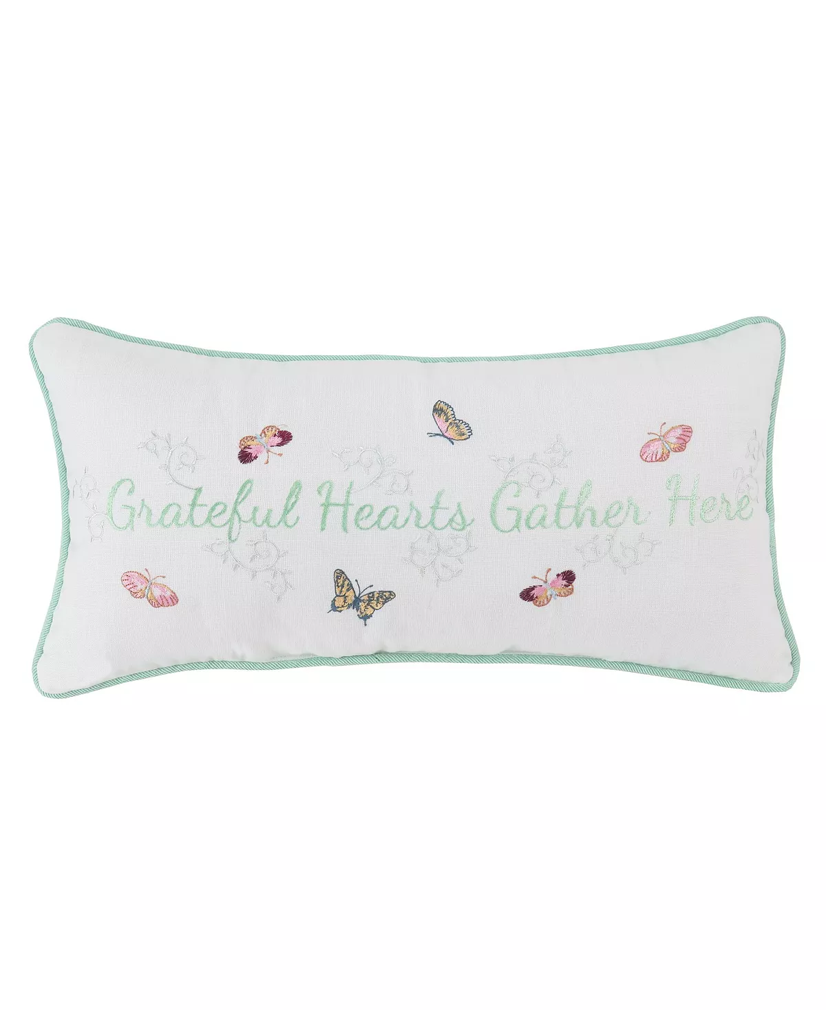 Update your room’s decor with our Live Well pillow from Lenox. With beautiful embroidered typography and colors inspired by the butterfly meadow pattern.