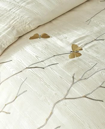 Inspired by Michael Aram deep fascination with the “Butterfly Ginkgo” tree, this duvet and sham flutters with timeless beauty. This duvet and sham have gold-tone embroidered butterflies and twisted branches on the face to celebrate nature’s beauty.