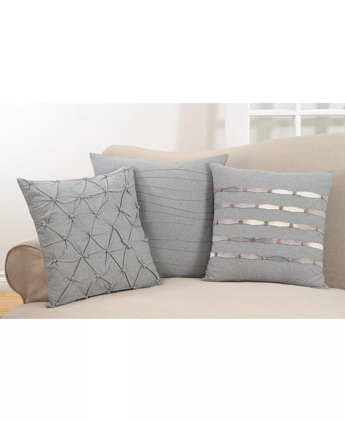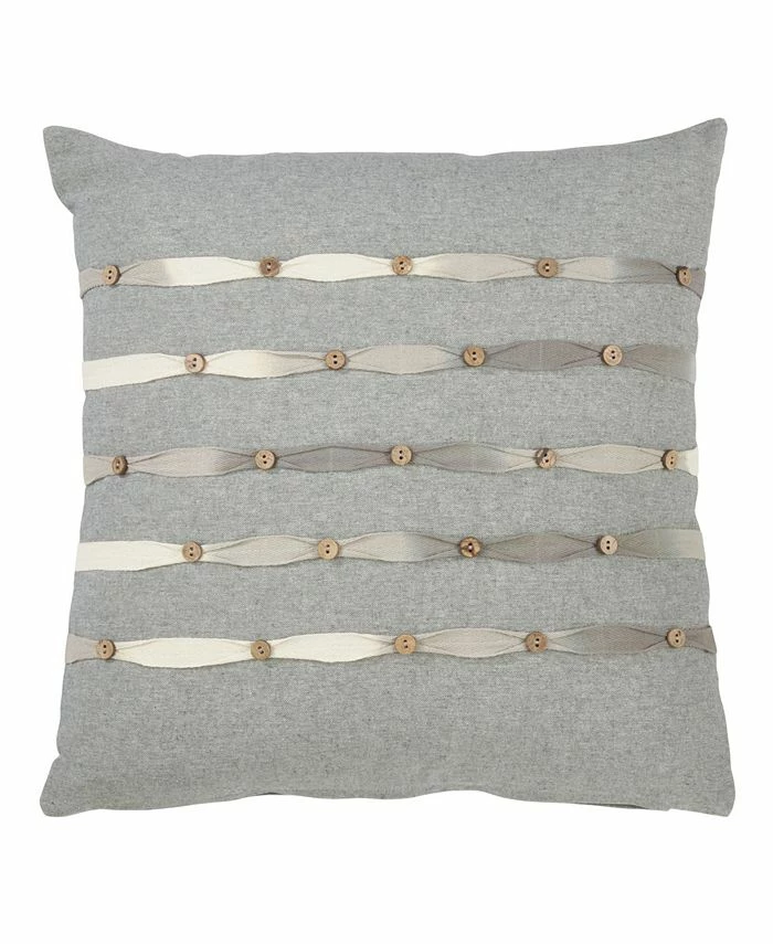 Designed with delicate buttons and pretty ribbons, this charming Button Work Throw Pillow is just “cute as a button”. On a granular gray background, this simple, yet effective design will completely transform your room.