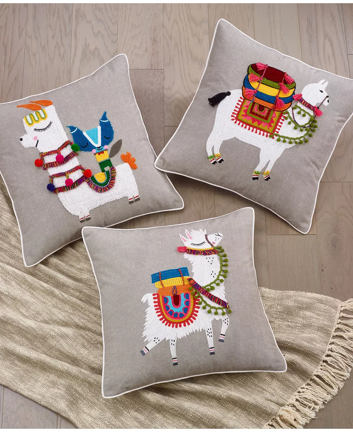 You can’t miss the mark with this lovely Large Llama Embroidery Throw Pillow. Featuring a solid color background that contrast beautifully with the colorful embroidery, this cotton throw pillow works magic on any spot.