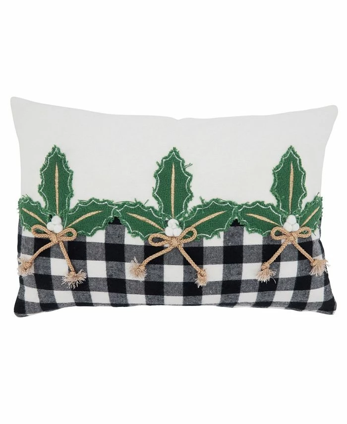 This pillow is a great addition to your Christmas decor. Featuring a light background that contrasts with the buffalo plaid holly design, the pillow brings texture and dimension to any space. It works great on its own or can also be easily paired with solid colors.