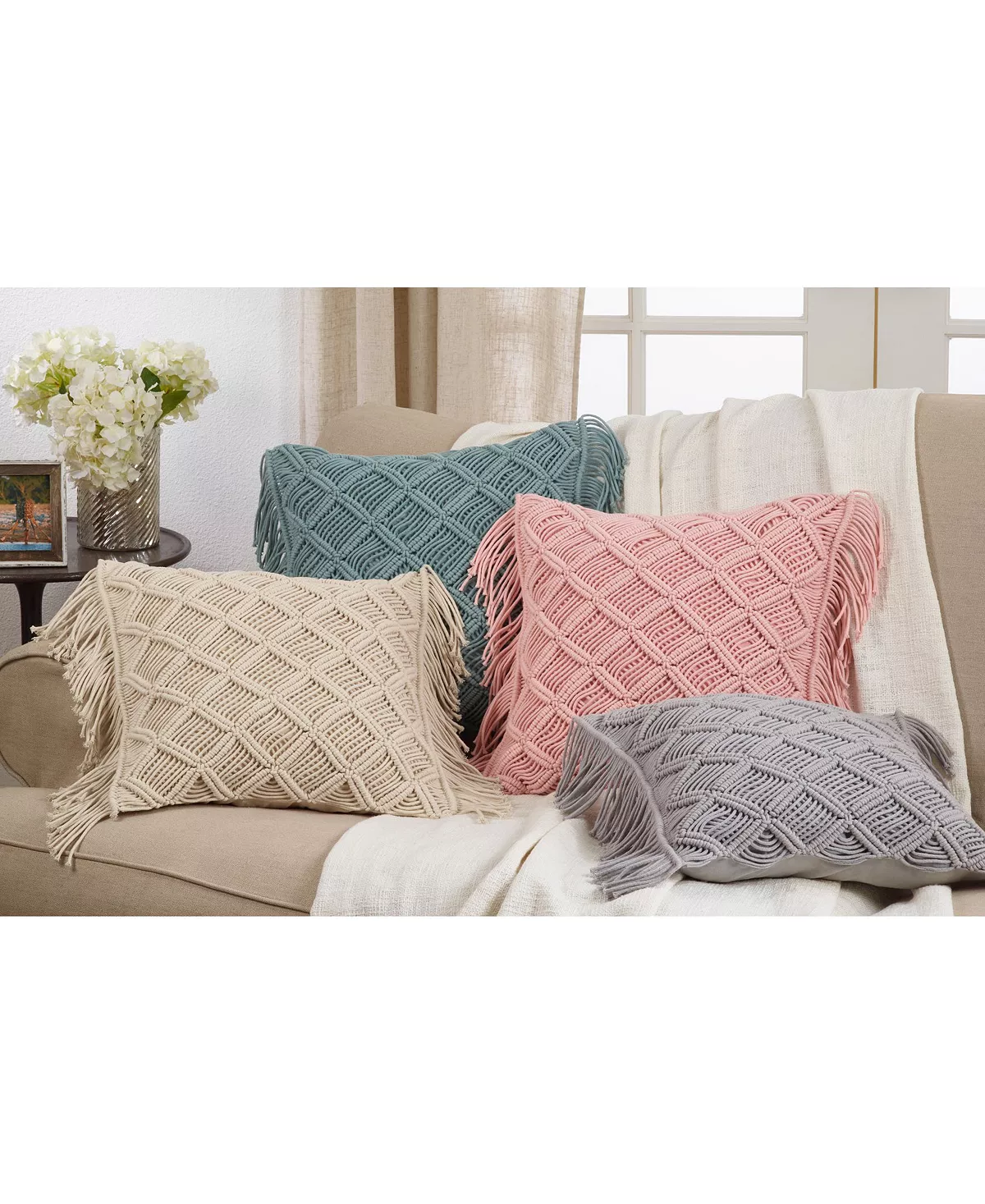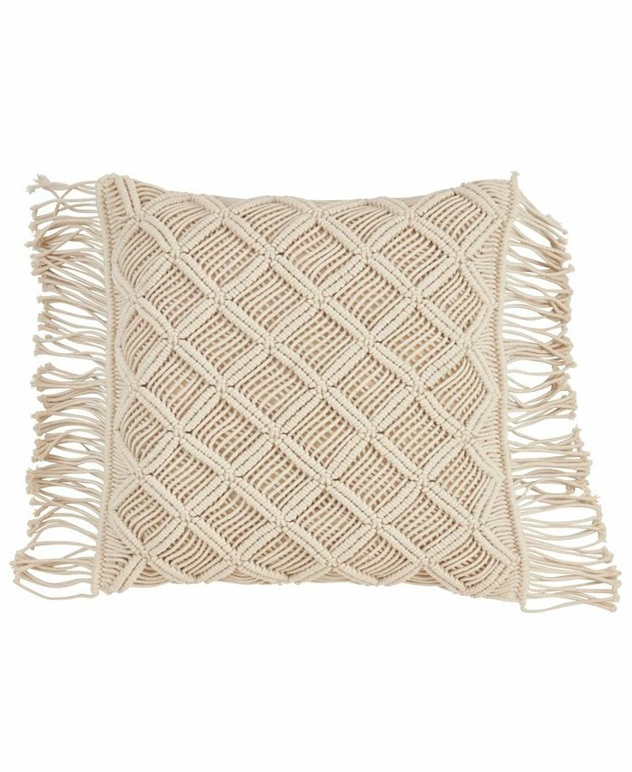 This fun macrame throw pillow adds charm to any space Using a balanced combination of retro design and contemporary solid colors, it pairs easily with any decor. Complete the look and add a solid throw to create the perfect cozy corner.