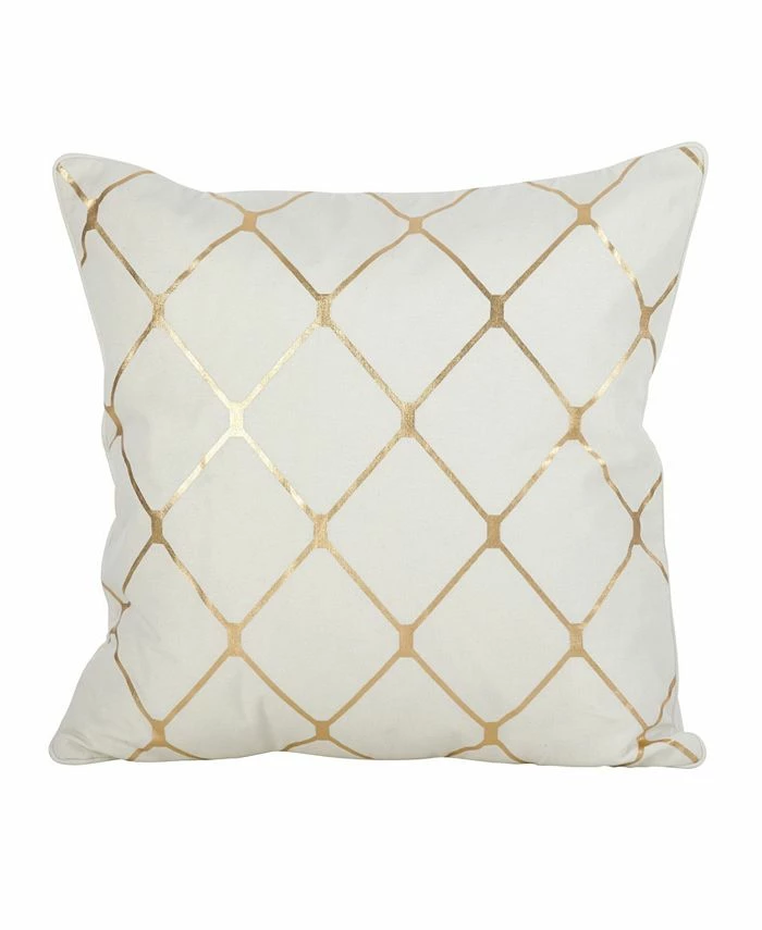 Where modern meets classic. A white cotton throw pillow featuring a minimal metallic diamond link design.