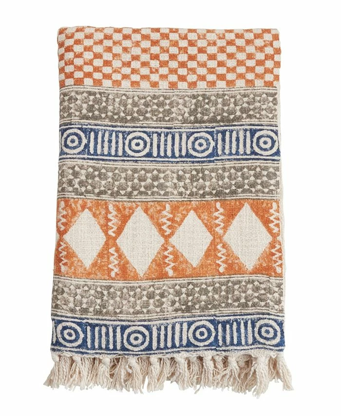 Bring a beautiful splash of color to your home decor with this stylish block print design throw blanket. A lovely combination of vintage-like and boho style.