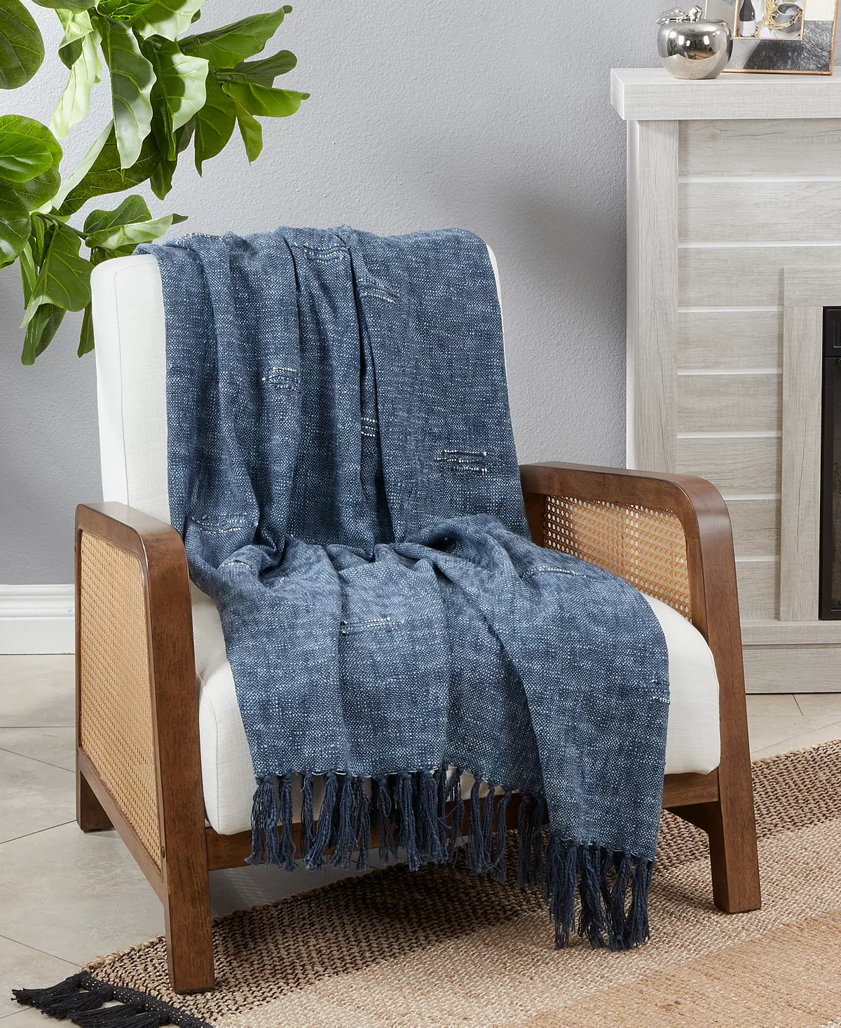 Bring a wonderful pop of color to your home decor with this chic and stylish stitched line throw blanket. Featuring a beautiful, deep navy blue design, the cotton throw adds depth and dimension to any seating area.