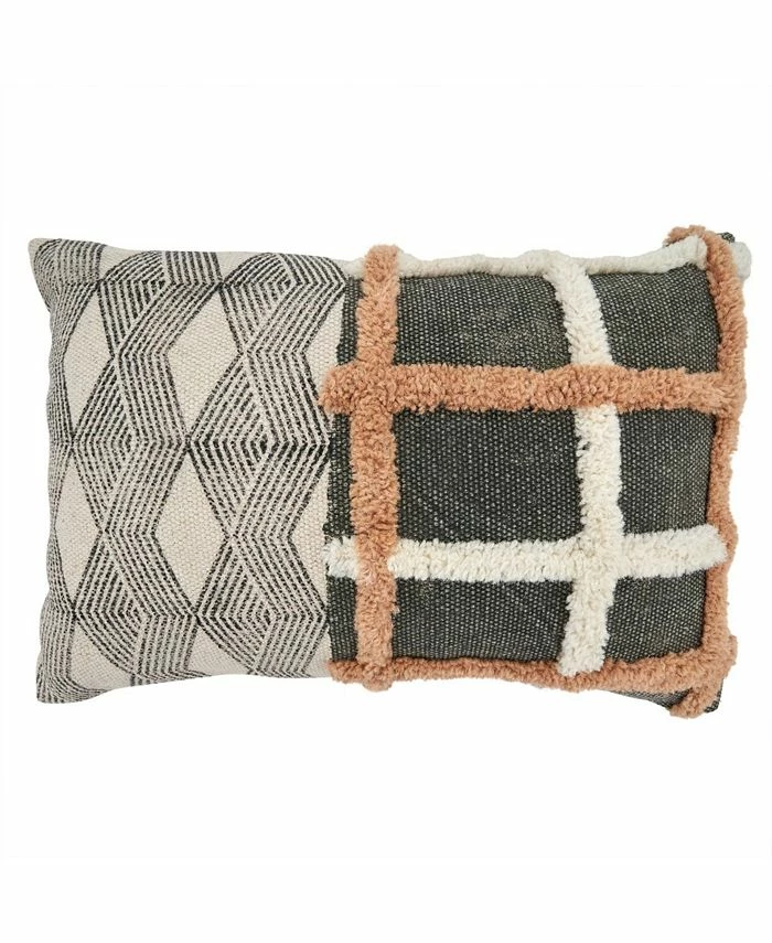 This unique geometric print and tufted throw pillow combines a modern design with a classical look and feel. The geometric print balances beautifully the texturized embroidery, delivering a truly one-of-a-kind accent piece.