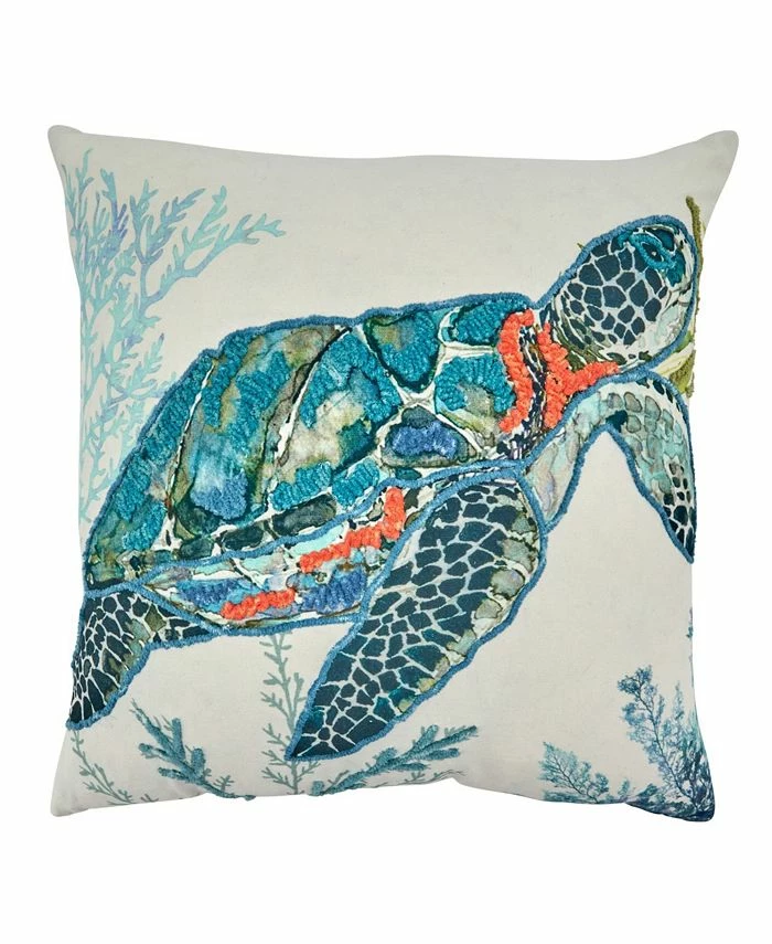 Make your living room decor truly unique with this adorable sea turtle design throw pillow. Its watercolor-like print and ocean inspiration will instantly catch the eye and give any space a splash of color and style. Pair it with solid colors to make it pop even more.
