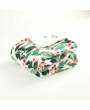Bring classic holiday cheer to your home with this decorative set. The sherpa reverse of the throw blanket will keep incredibly cozy and styles your space with a homey seasonal design. Switch on the decorative pillow and watch the holiday wreath light up with small LED bulbs.