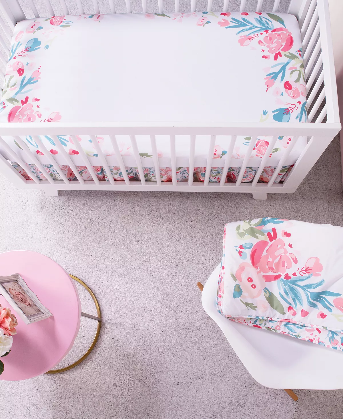 Lay your little one down surrounded by lovely florals for a picture-perfect moment with the My Tiny Moments™ Painterly Floral Fitted Crib Sheet by Trend Lab. Coordinates with a full line of Painterly Floral crib bedding and decor.